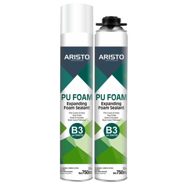 Aristo One-Component Construction PU Foam cures when moisture in the air reacts with the chemistry of the foam, it can be used to economically insulate and fill of large seams, joints and cracks against heat loss, cold, draught, noise and moisture, adhere to all building materials except polyurethane foil, silicone and Teflon.